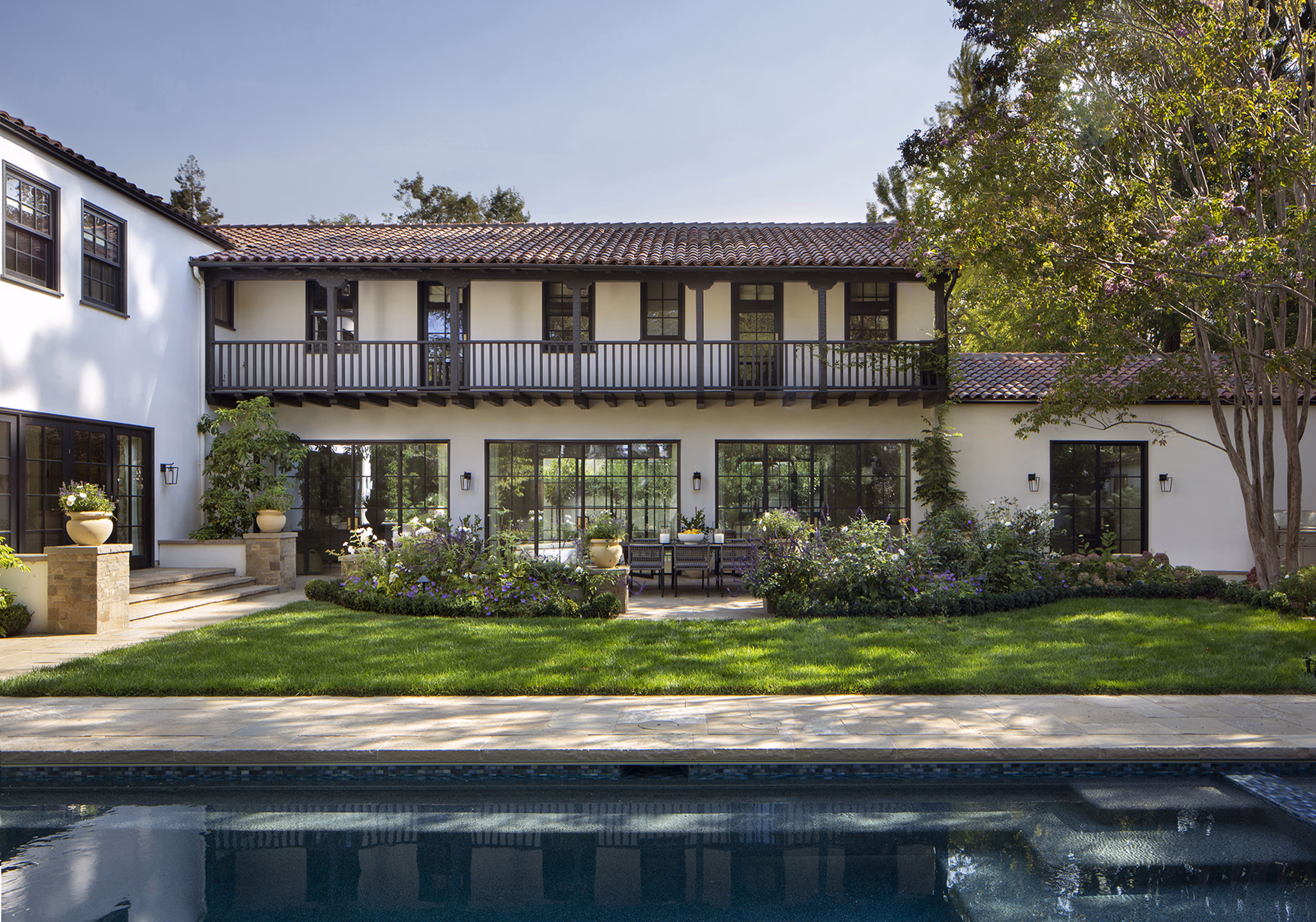 When FGA was engaged to reimagine this 1920s Spanish Colonial in Palo Alto, California, the brief was ambitious: create expansive, modern spaces for hosting — without compromising the home’s historical soul. FGA preserved and restored the original street-facing façade, emphasizing its signature architectural elements, while designing a substantial rear addition that opens the home to the outdoors. The new layout transforms the main level into a bright, contemporary environment with increased natural light and panoramic garden views. A discreet second-story addition provides much-needed space for additional bedrooms and bathrooms — all executed in a manner that feels integrated, not imposed.